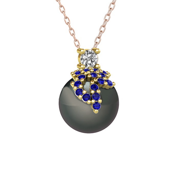 Beyaz zirkon, lab safir ve siyah inci 8 ayar altın kolye (40 cm rose altın rolo zincir)