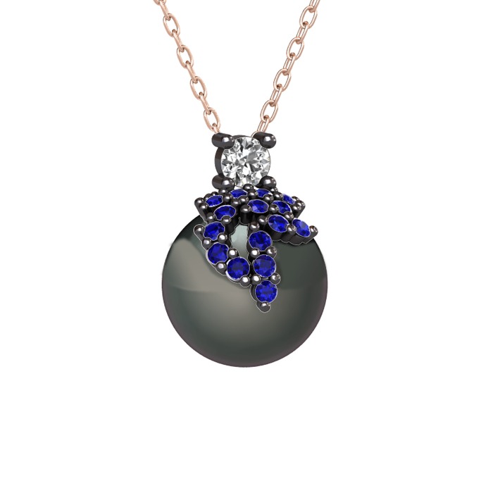 Beyaz zirkon, lab safir ve siyah inci 925 ayar siyah rodyum kaplama gümüş kolye (40 cm gümüş rolo zincir)