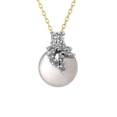 Beyaz zirkon, pırlanta ve inci 8 ayar beyaz altın kolye (0.176 karat, 40 cm altın rolo zincir)