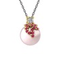 Beyaz zirkon, rodolit garnet ve pembe inci 925 ayar altın kaplama gümüş kolye (40 cm gümüş rolo zincir)