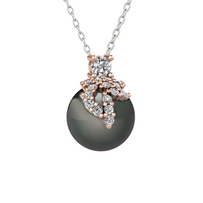 Beyaz zirkon ve siyah inci 18 ayar rose altın kolye (40 cm gümüş rolo zincir)