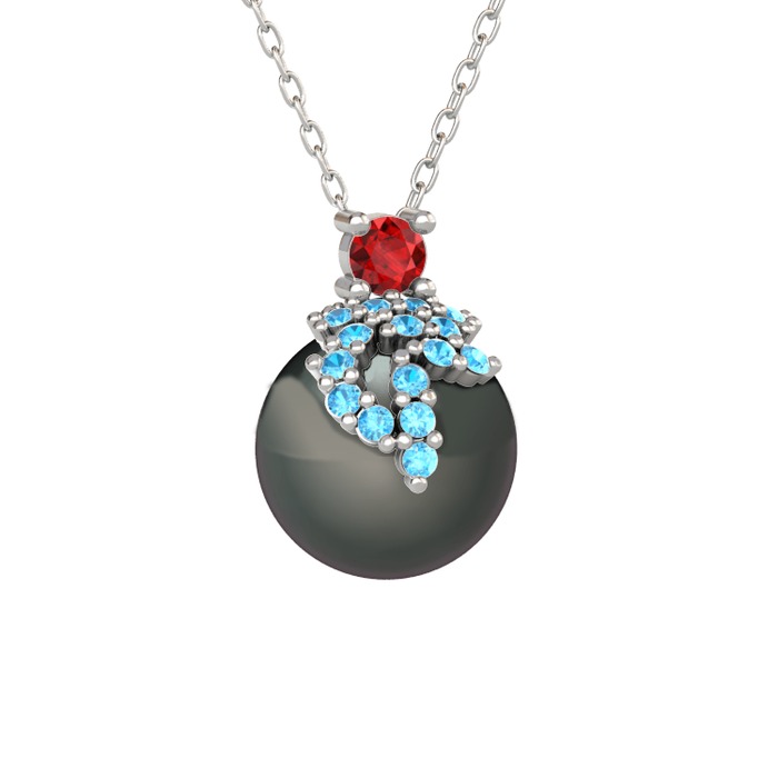 Garnet, akuamarin ve siyah inci 8 ayar beyaz altın kolye (40 cm beyaz altın rolo zincir)