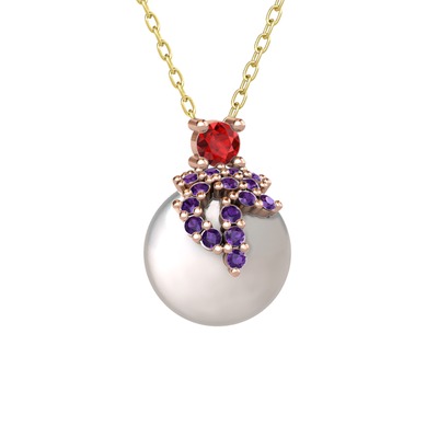 Garnet, ametist ve inci 14 ayar rose altın kolye (40 cm altın rolo zincir)