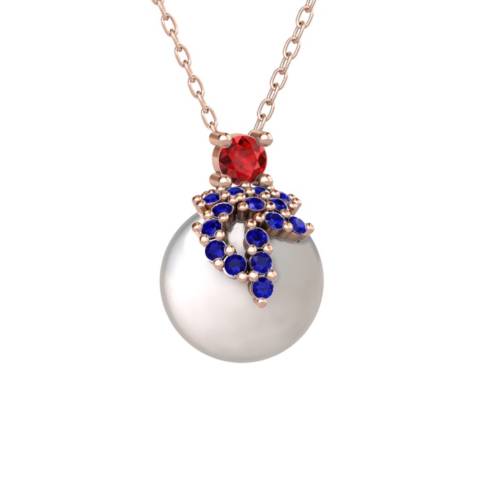 Garnet, lab safir ve inci 925 ayar rose altın kaplama gümüş kolye (40 cm gümüş rolo zincir)