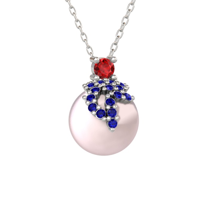 Garnet, lab safir ve pembe inci 8 ayar beyaz altın kolye (40 cm beyaz altın rolo zincir)