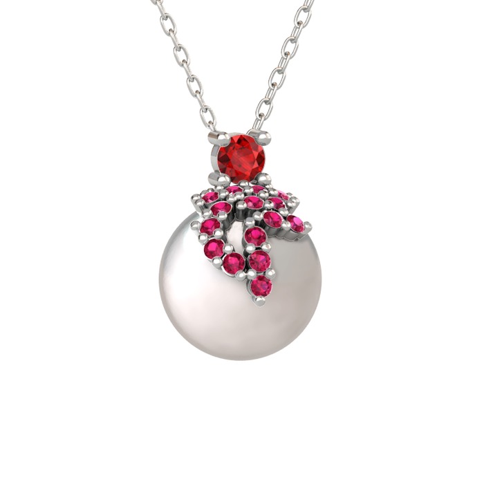 Garnet, rodolit garnet ve inci 14 ayar beyaz altın kolye (40 cm beyaz altın rolo zincir)