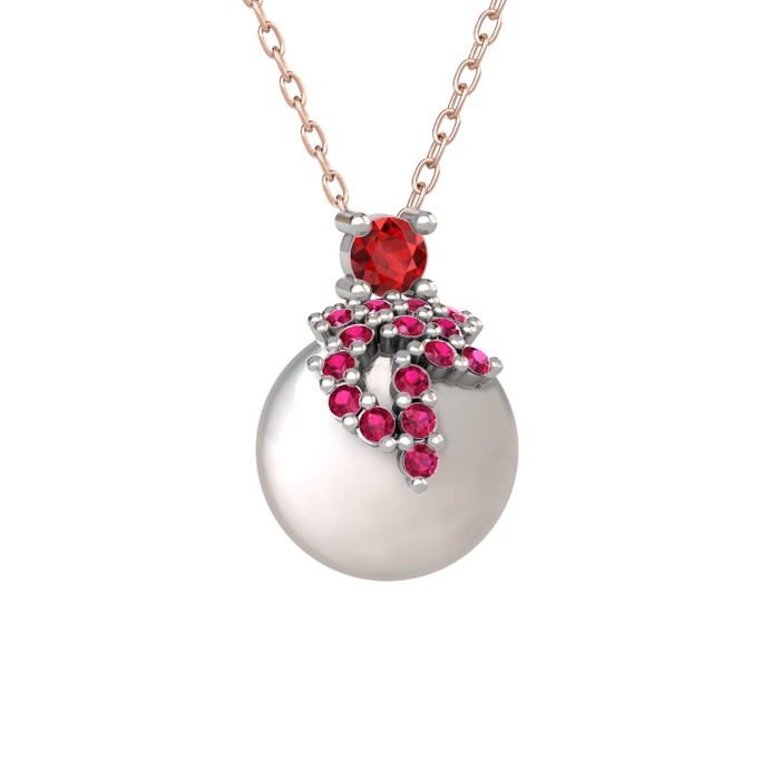 Garnet, rodolit garnet ve inci 925 ayar gümüş kolye (40 cm gümüş rolo zincir)