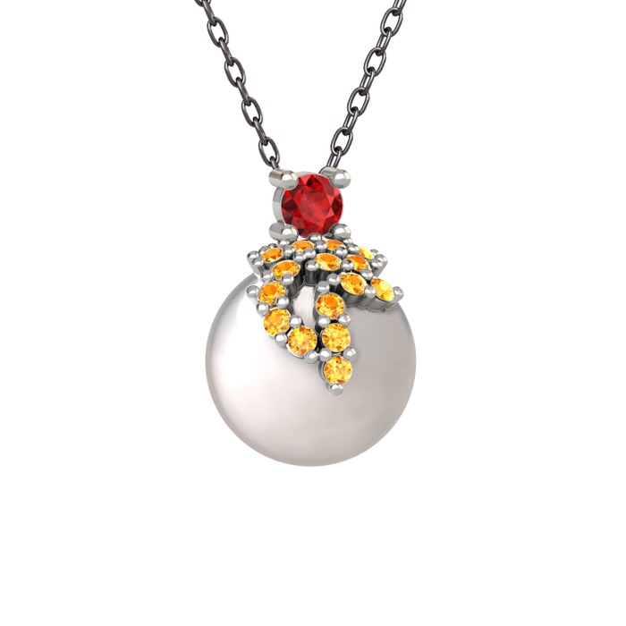 Garnet, sitrin ve inci 925 ayar gümüş kolye (40 cm gümüş rolo zincir)