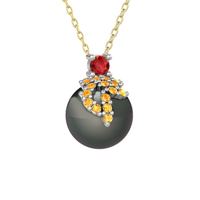 Garnet, sitrin ve siyah inci 14 ayar beyaz altın kolye (40 cm altın rolo zincir)