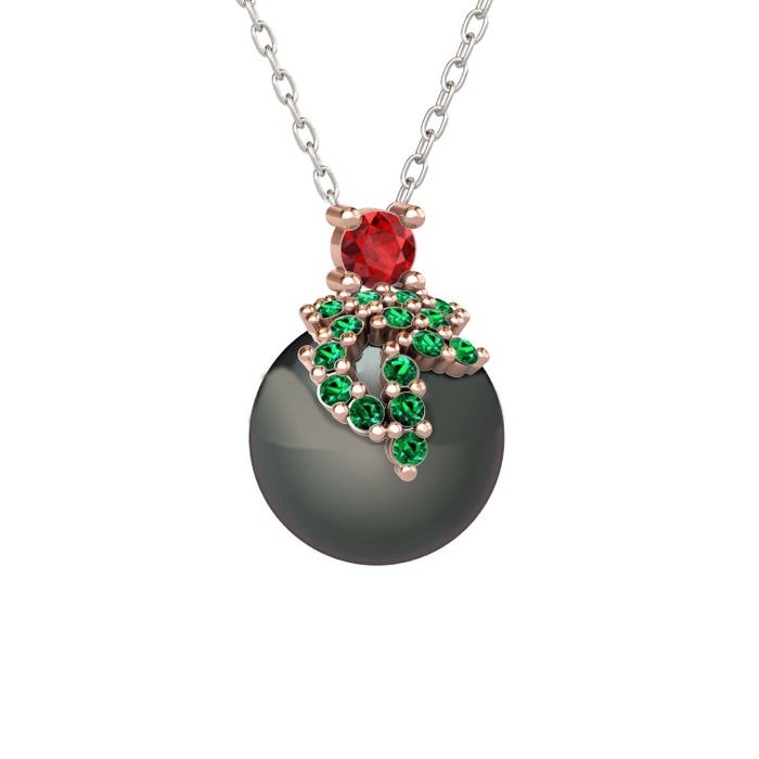 Garnet, yeşil kuvars ve siyah inci 18 ayar rose altın kolye (40 cm gümüş rolo zincir)