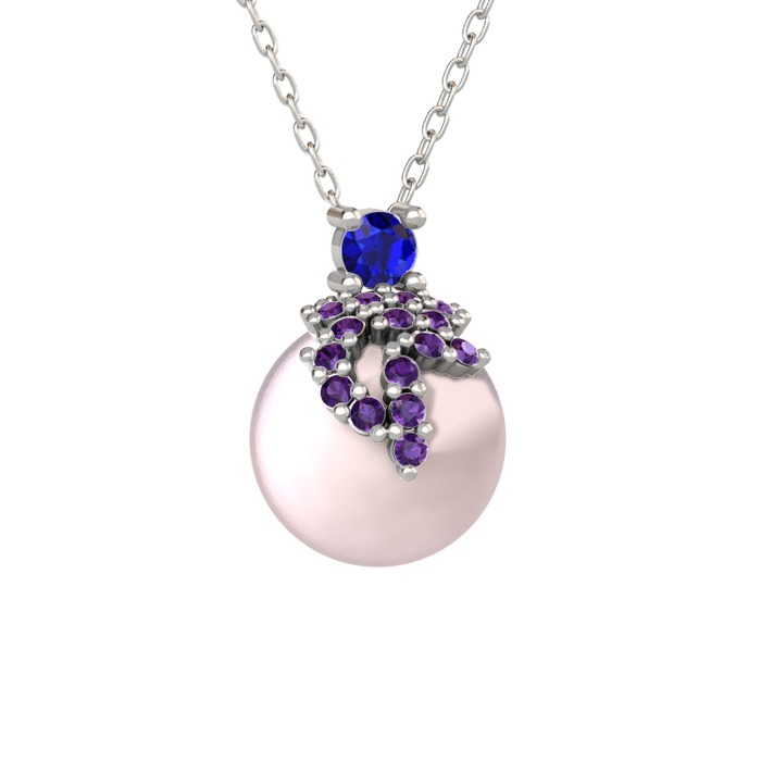 Lab safir, ametist ve pembe inci 8 ayar beyaz altın kolye (40 cm beyaz altın rolo zincir)