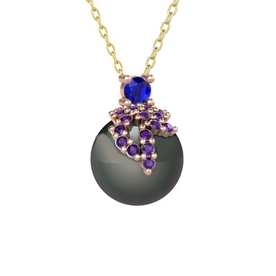 Lab safir, ametist ve siyah inci 14 ayar rose altın kolye (40 cm altın rolo zincir)