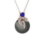 Lab safir, beyaz zirkon ve siyah inci 925 ayar rose altın kaplama gümüş kolye (40 cm gümüş rolo zincir)