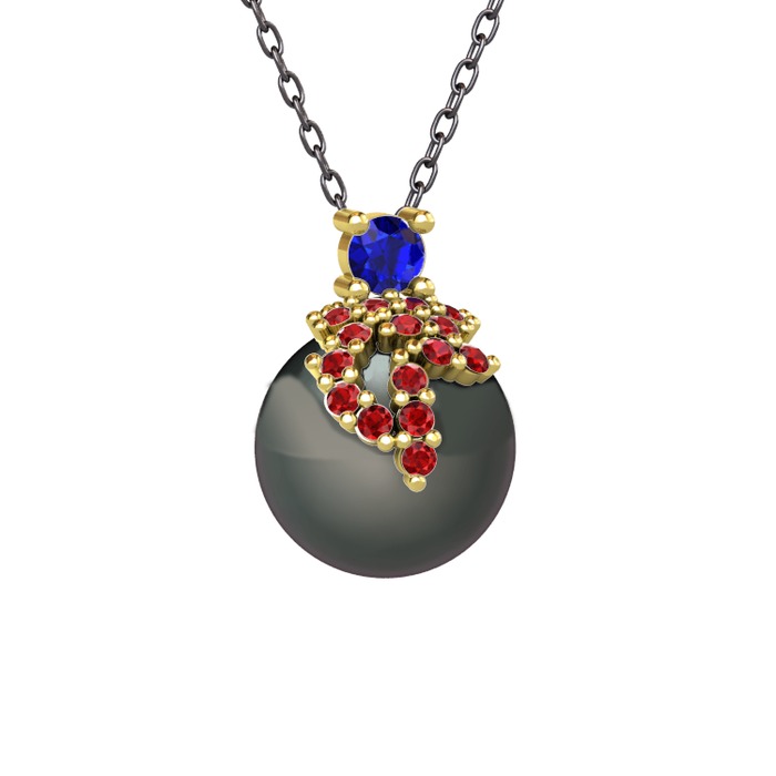 Lab safir, garnet ve siyah inci 8 ayar altın kolye (40 cm gümüş rolo zincir)