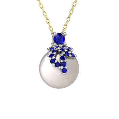 Lab safir ve inci 14 ayar beyaz altın kolye (40 cm altın rolo zincir)