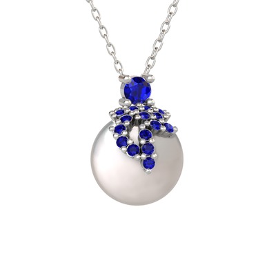 Lab safir ve inci 925 ayar gümüş kolye (40 cm gümüş rolo zincir)