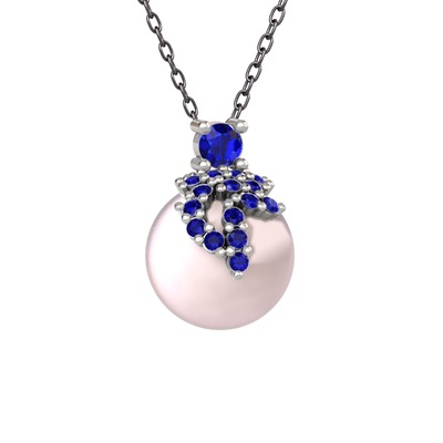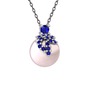 Lab safir ve pembe inci 925 ayar gümüş kolye (40 cm gümüş rolo zincir)