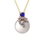 Lab safir, pırlanta ve inci 8 ayar rose altın kolye (0.176 karat, 40 cm altın rolo zincir)