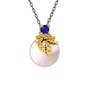 Lab safir, sitrin ve pembe inci 925 ayar altın kaplama gümüş kolye (40 cm gümüş rolo zincir)