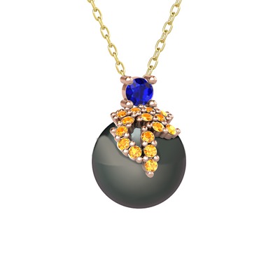 Lab safir, sitrin ve siyah inci 8 ayar rose altın kolye (40 cm gümüş rolo zincir)