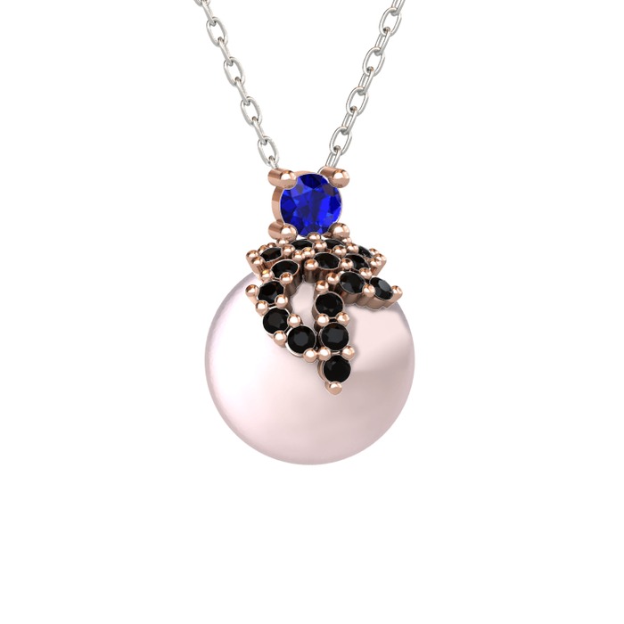 Lab safir, siyah zirkon ve pembe inci 18 ayar rose altın kolye (40 cm beyaz altın rolo zincir)