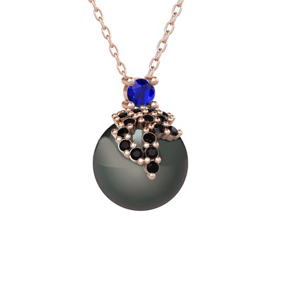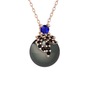 Lab safir, siyah zirkon ve siyah inci 18 ayar rose altın kolye (40 cm rose altın rolo zincir)