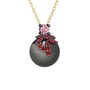 Pembe kuvars, garnet ve siyah inci 925 ayar siyah rodyum kaplama gümüş kolye (40 cm altın rolo zincir)
