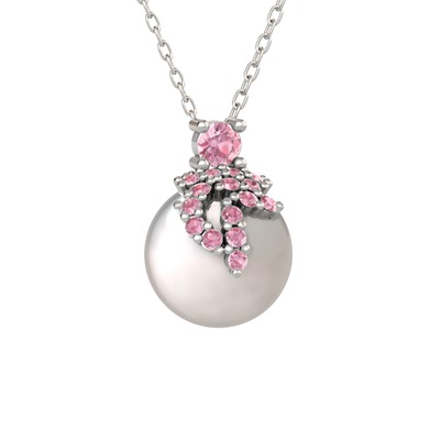 Pembe kuvars ve inci 925 ayar gümüş kolye (40 cm beyaz altın rolo zincir)