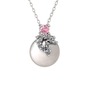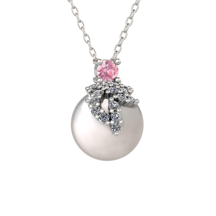 Pembe kuvars, pırlanta ve inci 18 ayar beyaz altın kolye (0.176 karat, 40 cm gümüş rolo zincir)
