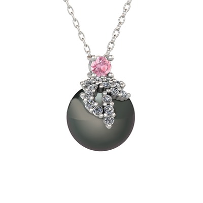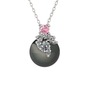 Pembe kuvars, pırlanta ve siyah inci 925 ayar gümüş kolye (0.176 karat, 40 cm gümüş rolo zincir)