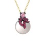 Pembe kuvars, rodolit garnet ve inci 925 ayar siyah rodyum kaplama gümüş kolye (40 cm gümüş rolo zincir)