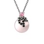 Pembe kuvars, siyah zirkon ve pembe inci 14 ayar beyaz altın kolye (40 cm gümüş rolo zincir)