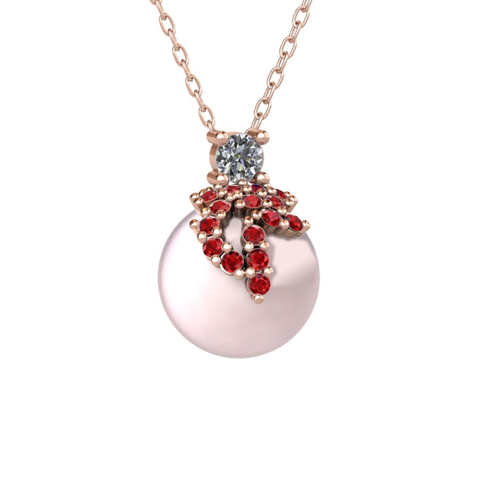 Pırlanta, garnet ve pembe inci 14 ayar rose altın kolye (0.11 karat, 40 cm rose altın rolo zincir)