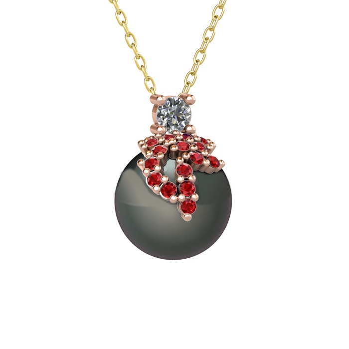 Pırlanta, garnet ve siyah inci 18 ayar rose altın kolye (0.11 karat, 40 cm altın rolo zincir)