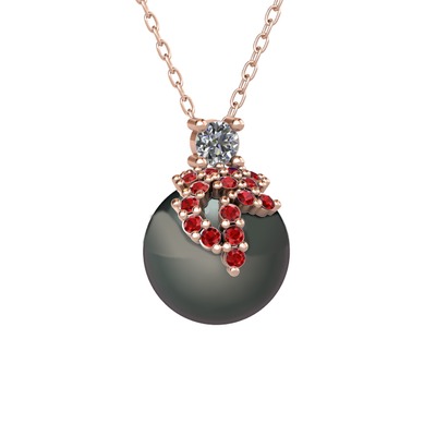 Pırlanta, garnet ve siyah inci 18 ayar rose altın kolye (0.11 karat, 40 cm rose altın rolo zincir)