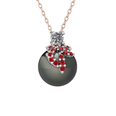 Pırlanta, garnet ve siyah inci 8 ayar beyaz altın kolye (0.11 karat, 40 cm gümüş rolo zincir)