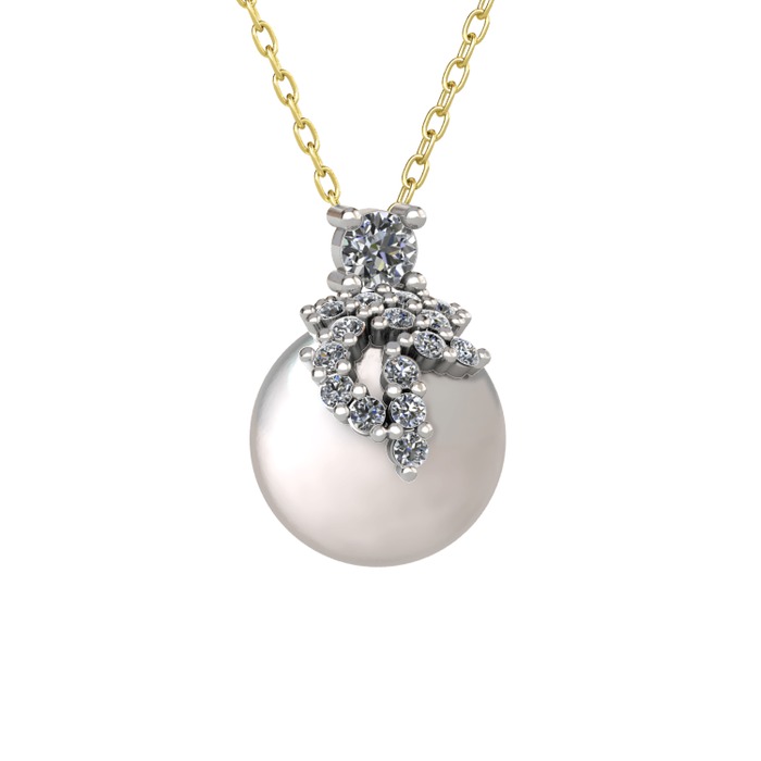 Pırlanta ve inci 18 ayar beyaz altın kolye (0.286 karat, 40 cm altın rolo zincir)