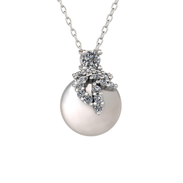 Pırlanta ve inci 18 ayar beyaz altın kolye (0.286 karat, 40 cm beyaz altın rolo zincir)