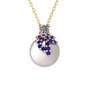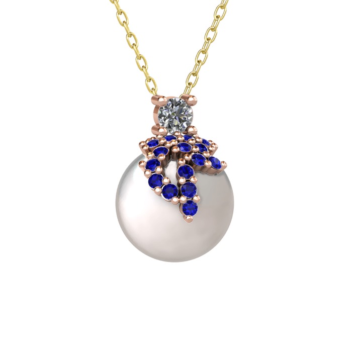 Pırlanta, lab safir ve inci 8 ayar rose altın kolye (0.11 karat, 40 cm altın rolo zincir)