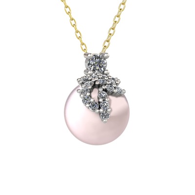 Pırlanta ve pembe inci 18 ayar beyaz altın kolye (0.286 karat, 40 cm gümüş rolo zincir)