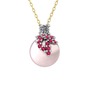 Pırlanta, rodolit garnet ve pembe inci 925 ayar gümüş kolye (0.11 karat, 40 cm altın rolo zincir)
