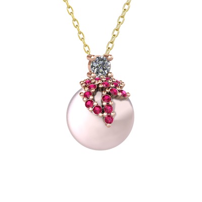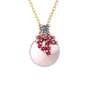 Pırlanta, rodolit garnet ve pembe inci 925 ayar rose altın kaplama gümüş kolye (0.11 karat, 40 cm altın rolo zincir)