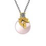 Pırlanta, sitrin ve pembe inci 925 ayar altın kaplama gümüş kolye (0.11 karat, 40 cm gümüş rolo zincir)