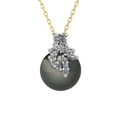 Pırlanta ve siyah inci 14 ayar beyaz altın kolye (0.286 karat, 40 cm altın rolo zincir)