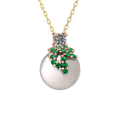 Pırlanta, yeşil kuvars ve inci 14 ayar rose altın kolye (0.11 karat, 40 cm altın rolo zincir)