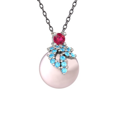 Rodolit garnet, akuamarin ve pembe inci 925 ayar gümüş kolye (40 cm gümüş rolo zincir)