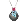 Rodolit garnet, akuamarin ve siyah inci 14 ayar beyaz altın kolye (40 cm beyaz altın rolo zincir)