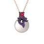 Rodolit garnet, ametist ve inci 925 ayar siyah rodyum kaplama gümüş kolye (40 cm rose altın rolo zincir)