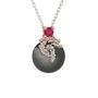 Rodolit garnet, beyaz zirkon ve siyah inci 18 ayar rose altın kolye (40 cm beyaz altın rolo zincir)