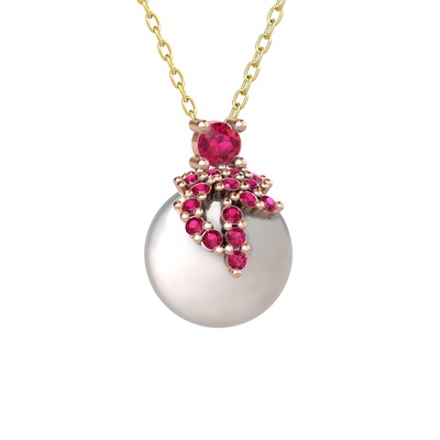 Rodolit garnet ve inci 8 ayar rose altın kolye (40 cm altın rolo zincir)